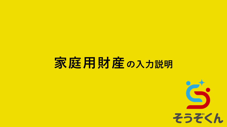 - 金銭的価値のある家庭用財産等が無い場合でも、一般のご家庭にあるような家具、家電等は「家財一式」として10万円を入力することを推奨しています。
